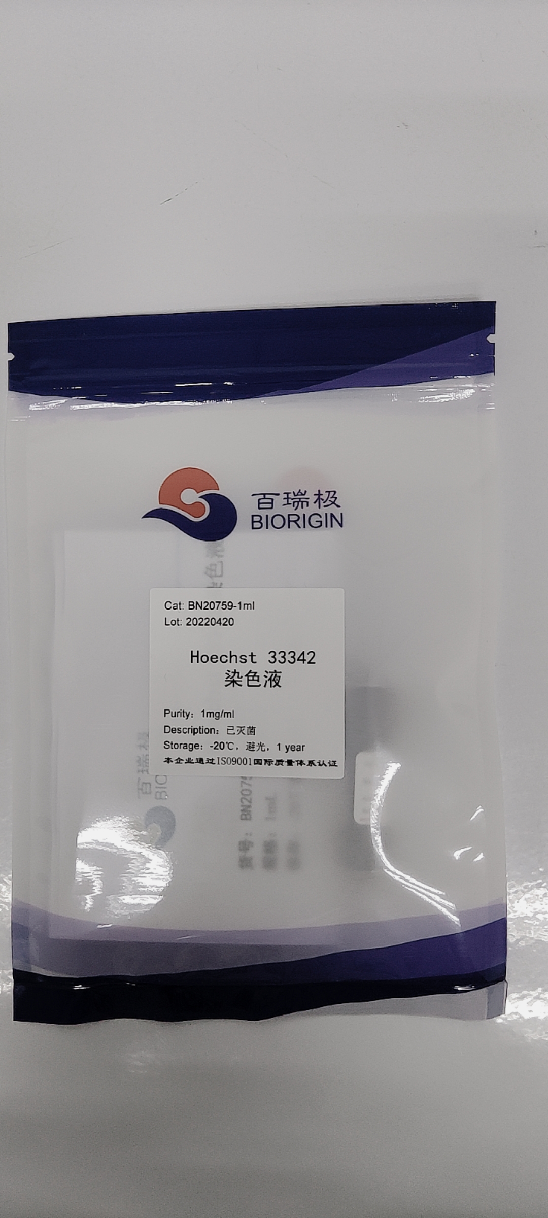 使用說明: 使用前用生理鹽水或 PBS 將 Hoechst 33342 染色液稀釋 100 倍,即為工作液。